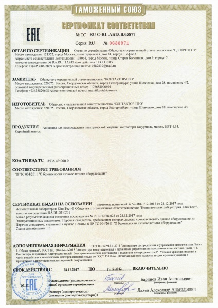 Собственное производство контакторов КВТ-1,14