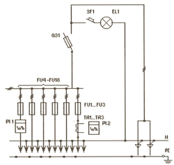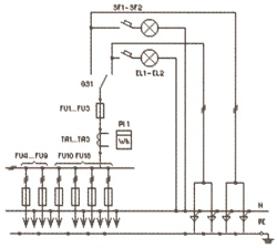 | ВРУ1-21-10УХЛ4 | FU1-FU3: Предохранители ПН2-250 FU4-FU9: Предохранители ПН2-60 FU10-FU18: Предохранители ПН2-100 PI1: Счетчик (учет общих нагрузок) QS1: Переключатель 250А SF1, SF2: Автоматические выключатели EL1, EL2: Лампы накаливания TA1-TA3: Трансф-ры тока 50/5...200/5 | Нет | Нет | |