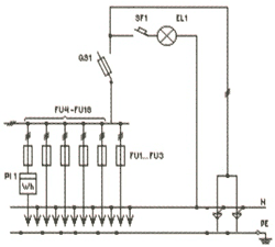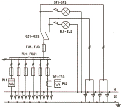 | ВРУ1-22-53УХЛ4 ВРУ1-22-54УХЛ4 ВРУ1-22-55УХЛ4 ВРУ1-22-56УХЛ4 | FU1-FU3: Предохранители ПН2-250 FU4-FU21: Предохранители ПН2-100 PI1: Счетчик (учет домоупр. нагрузок) QS1, QS2: Блок-выключатели SF1, SF2: Автоматические выключатели EL1, EL2: Лампы накаливания | Автомат. с автомат. выключ. Неавтомат. с автомат. выключ. Автомат. с автомат. выключ. Неавтомат. с автомат. выключ. | 5 6 7 8 | |