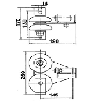 Троллеедержатели крановые для жестких стальных троллеев с верхним токоприемом. Профиль троллея – уголок. |